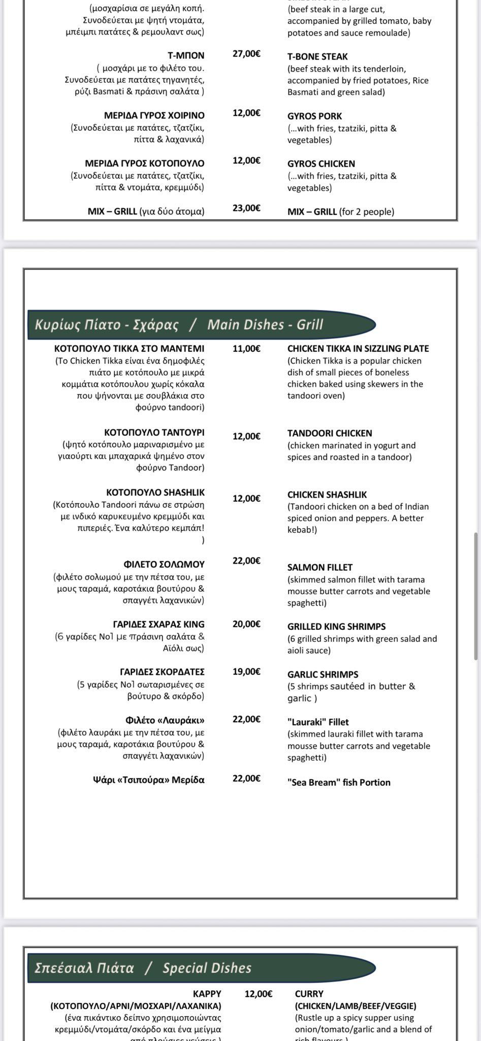 Delivery - 19:00 - 23:00 daily (minimum spend €30) - Delivery area Pefkos / Lothiarika / Psaltos